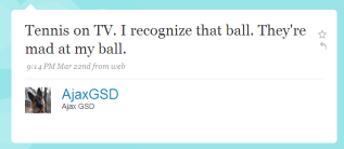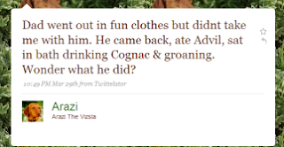 These are tweets by people (because Dogs can't use computers) pretending to be dogs, talking about their Owners (themselves) in the third person, and in some cases even changing the language level down a few notches to emulate a child (or what we would expect a dog to sound like.)