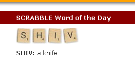 So I just randomly was looking at my own blog, and laughed again at the Scrabble word of the day (Dildo) and decided to see what today's word was. Awesome. I may just have to check this everyday.