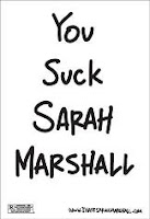 On the Subway this afternoon I saw a poster with what looked like a hand-graffitied note to an ex-girlfriend. It said "I'm SO over you Sarah Marshall!". There was also a smaller inscription with ihatesarahmarshall.com